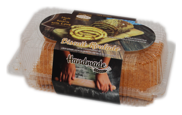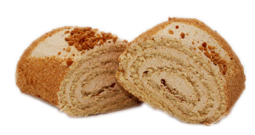 Zarte Biskuitrolle mit Cremeschichten aus gezuckerter Kondensmilch und Erdnüssen.